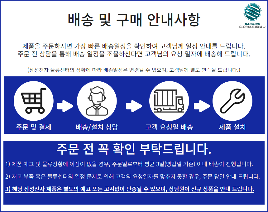 제주도 등 일부 도서/산간 지역은 별도 배송비가 발생할 수 있으며, 설치상품의 경우 설치 환경 등에 따라 추가 설치비가 발생할 수 있습니다.